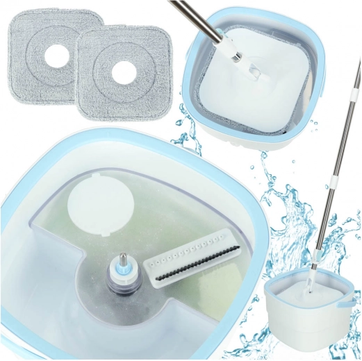 Tento mop je vybaven dvoukomorovým systémem, který zabraňuje mísení znečištěné vody s čistou vodou, což je klíčové pro hygienické čištění. Teleskopická tyč z lehkého hliníku vám umožní přizpůsobit délku podle vašich potřeb a zaručuje dlouhou životnost a snadné použití.