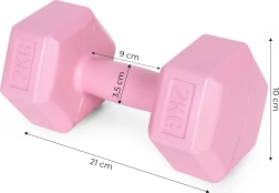Trénujte efektivně doma s růžovými činkami ModernHome. Sada obsahuje 2 kusy po 2 kg, které podpoří komplexní posílení celého těla – paží, zad, břicha, nohou i hýždí. Díky šestihrannému tvaru jsou činky stabilní a bezpečné, takže je můžete klidně odložit při kruhovém tréninku i během přestávek.
