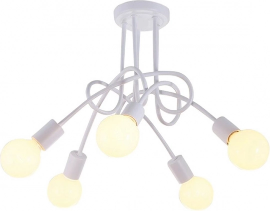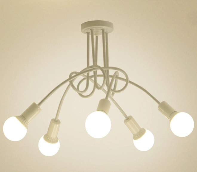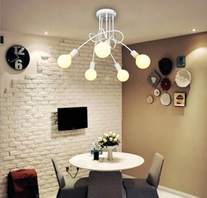 Elegantní stropní lustr s 5 světelnými body a paticí E27 je skvělou volbou pro moderní i loftové interiéry. Kovová konstrukce v bílé barvě dodá prostoru lehkost a styl, možnost zapojení na dvojitý vypínač zvyšuje komfort používání. Ideální pro rozjasnění tmavých koutů i jako dekorativní prvek do obýváku, jídelny či pracovny.