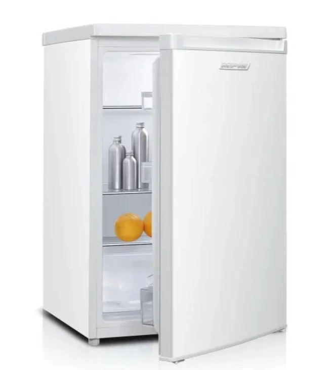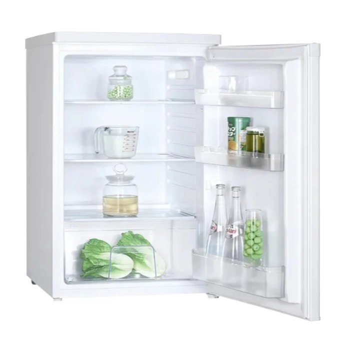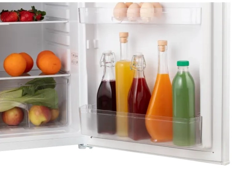 Vnitřní prostor je chytře rozvržen: skleněné police, prostorná přihrádka na zeleninu a praktické přihrádky ve dveřích na nápoje a drobnosti. Nastavitelný termostat umožní přizpůsobit chlazení aktuálním potřebám, zatímco tichý chod neruší ani v garsonce nebo kanceláři.