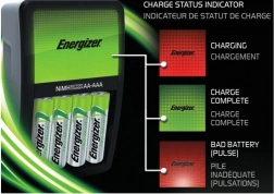 Praktická nabíječka ENERGIZER Maxi je cenově dostupné řešení pro každodenní použití. Nabíjí současně 2 nebo 4 akumulátory AA/AAA, nabízí LED indikaci průběhu, automatické vypnutí proti přebití a je napájena přímo ze síťové zásuvky. Součástí balení jsou 4× AA akumulátory 2000 mAh.