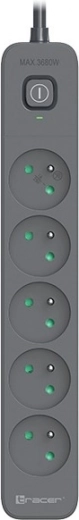 Prodlužovací lišta TRACER Power Line+ kombinuje spolehlivé napájení a pokročilé bezpečnostní prvky. Díky pěti zásuvkám snadno napájíte PC, TV, audio, kuchyňské spotřebiče či nabíječky, zatímco přepěťová ochrana a automatický jistič chrání vaše zařízení před výkyvy sítě a přetížením.