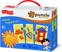 Objevte chytrou sadu Far Far Land, která děti hravou formou učí přiřazování a souvislosti mezi předměty. Každý obrázek je rozdělen na tři dílky a úkolem je najít správnou trojici, která k sobě patří. Skládání podporuje koncentraci, trpělivost a přináší radost z každého úspěšně složeného motivu.
