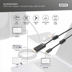Kabel umožňuje přímé propojení mezi USB-C zařízeními a HDMI displayemi.