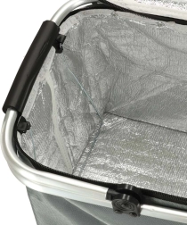 Termokoš je vyroben z nepromokavého polyesteru a disponuje dvojitým zipem pro snadný přístup. Pro komfortní nošení jsou zde vystužené rukojeti. Izolační vrstva pomáhá udržovat obsah v optimální teplotě, takže vaše potraviny a nápoje zůstanou čerstvé po dlouhou dobu. Díky antistatickým rukojetím je nošení příjemné i při plném obsazení koše.