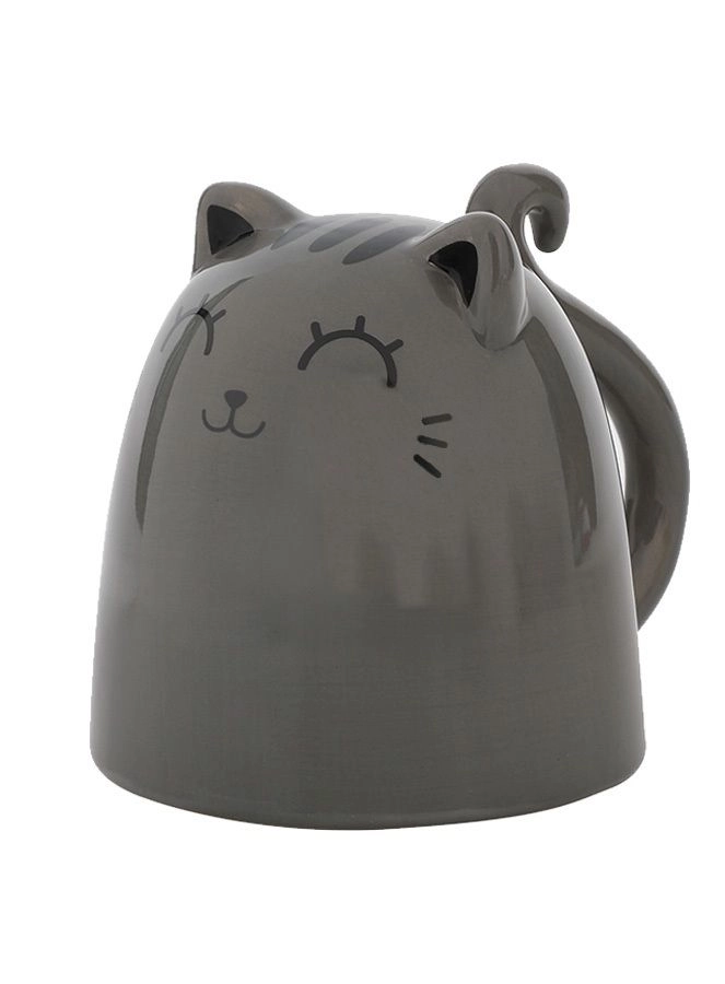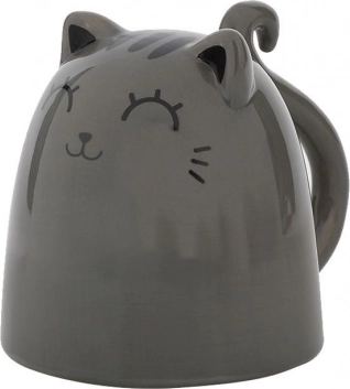 Šedý keramický hrnek ve tvaru kočky s uchem jako ocas. Stylový, pohodlný a ideální dárek pro milovníky koček. Šířka 9 cm, délka 13,5 cm.