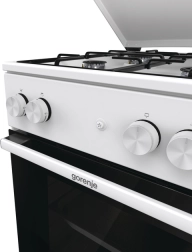 Ovládací knoflíky umístěné na čele zajišťují pohodlné a bezpečné nastavení plamene, skleněná dvířka trouby umožní kontrolu připravovaných pokrmů a praktické víko chrání varnou plochu, když se zrovna nevaří. Funkční příslušenství, jako rošt a plech, usnadňuje pečení a grilování.