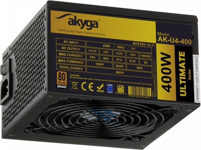 Napájecí zdroj Akyga AK-U4-400 je ideální volbou pro každého, kdo hledá spolehlivý zdroj výkonu pro svůj počítač. S certifikací 80 PLUS Bronze garantuje efektivní provoz a nízkou spotřebu energie. Díky reálnému výkonu 400W získáte stabilní dodávku energie pro vaše komponenty.
