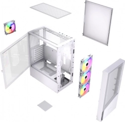 Fornax 4300 je bílá midi tower skříň navržená pro hráče i náročné uživatele, kteří vyžadují skvělý airflow, efektní ARGB podsvícení a pohodlnou montáž. Přední a horní mesh panely podporují intenzivní proudění vzduchu, zatímco čtyři předinstalované ARGB ventilátory udrží komponenty v optimálních teplotách i při dlouhých herních seancích.