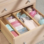 Organizér disponuje teleskopickým mechanismem, který umožňuje snadné přizpůsobení se různým velikostem zásuvek či polic.