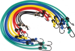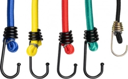 Tyto univerzální gumy na zavazadla se hodí nejen pro automobily, ale rovněž na kempování či survival aktivity. Zachovávají pružnost i po opakovaném roztažení a jsou jednoduché na použití, neboť každý popruh je opatřen pevným kovovým hákem pro rychlé uchycení.