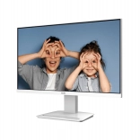 Monitor je vybaven elegantním bílým rámem a stojanem, který dokonale zapadá do moderních kancelářských i domácích prostor.