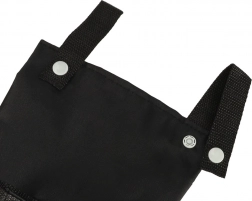 Dvě horní poutka se zapínáním na cvoky a zadní pásek na suchý zip drží brašnu pevně na místě, i když jedete po dlažbě nebo štěrku.