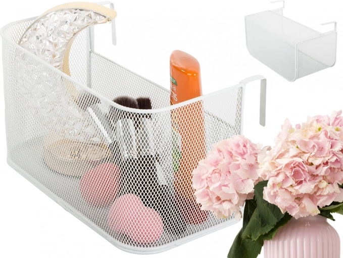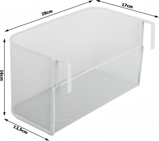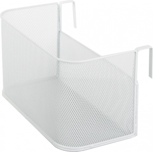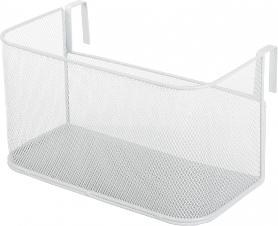 Kovový závěsný koš z drátěné síťoviny na kolejnici a dveře – bílý organizér