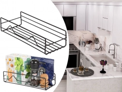 Montáž je rychlá a čistá: samolepicí háčky umožňují upevnění na hladké povrchy bez vrtání, případně je možné poličku přichytit i šrouby (volitelně). Díky univerzálním rozměrům se hodí na kosmetiku, sprchové gely, koření, čaje i drobné doplňky v kuchyni či předsíni.
