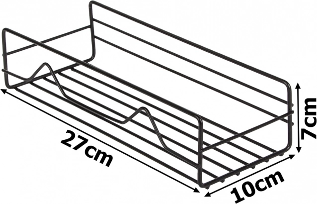 Drátěné dno a boky zajišťují odvětrání a rychlé osychání – ideální do sprchy i nad umyvadlo. Zvýšené okraje brání pádu předmětů.