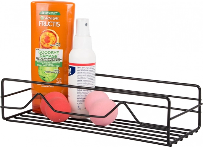 Tato závěsná kovová polička v elegantní černé barvě efektivně využije volný prostor na stěně a udrží vaše nezbytnosti vždy po ruce. Otevřené drátěné provedení zajišťuje rychlé odtékání vody a cirkulaci vzduchu, takže je perfektní do sprchy i nad umyvadlo.