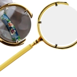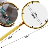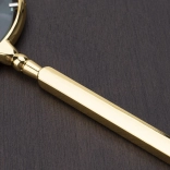 Elegantní ruční lupa se 6× zvětšením, kvalitní skleněnou čočkou a odolným kovovým tělem. Velká plocha čočky a zlatý design zajišťují pohodlné čtení a práci s detaily doma i v kanceláři.