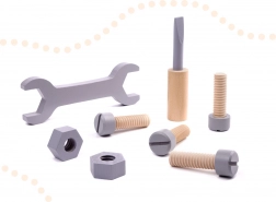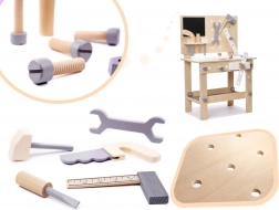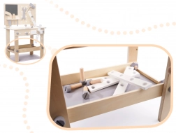 Dřevěná hračka dílenská sada nástrojů je vysněným dárkem pro každého malého kutila. Nabízí simulaci opravdových nástrojů a podporuje rozvoj manuálních dovedností a představivosti dětí.