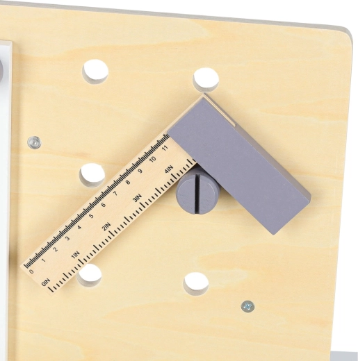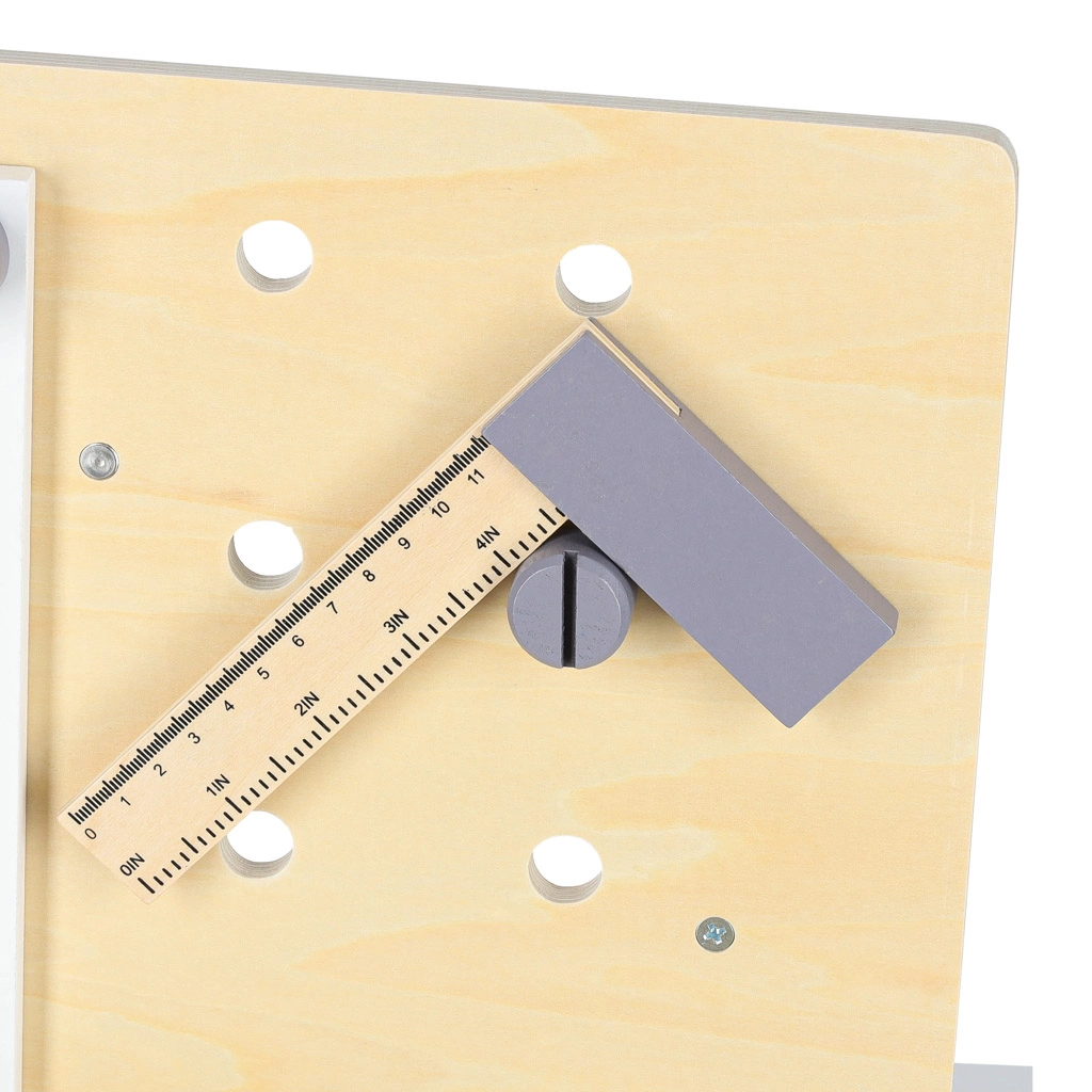Funkční rukojeť svěráku a deska s otvory umožní dětem bezpečně upnout díly a trénovat základní dovednosti jako při skutečné práci v dílně.
