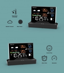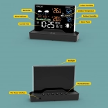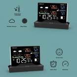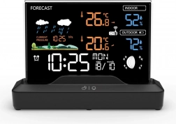 Díky bezdrátovému senzoru s dosahem až 30 m získáte aktuální teplotu a vlhkost z interiéru i exteriéru. Barometr a vestavěná předpověď počasí na 12–24 hodin vám usnadní plánování dne. Nechybí budík se snooze, kalendář ani zobrazení fází Měsíce.