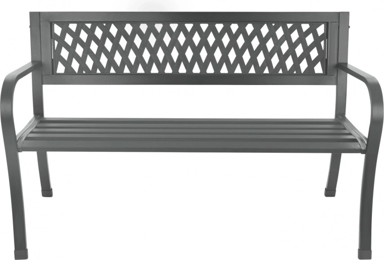 Elegantní zahradní lavice v grafitové barvě je ideální na zahradu, terasu i balkon. Nabízí pevnou kovovou konstrukci z oceli a litiny, odolnost vůči počasí a ergonomické opěradlo pro pohodlný odpočinek. Stabilitu zvyšují protiskluzové koncovky nohou a nadčasový otevřený (mřížkový) design dodá prostoru styl.