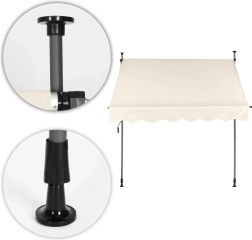 Díky nastavitelným ramenům můžete flexibilně měnit úhel sklonu látky a výšku od 220 cm do 300 cm.