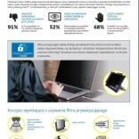 Chraňte své citlivé informace v kanceláři, ve vlaku i na cestách. Tento oboustranný odnímatelný filtr soukromí pro 14,1'' displeje s poměrem stran 16:9 zamezí zvědavým pohledům z boku díky zúžení úhlu viditelnosti na ±30°. Zároveň snižuje únavu očí, protože blokuje až 30 % škodlivého modrého světla, a antireflexní vrstva účinně potlačuje odlesky.