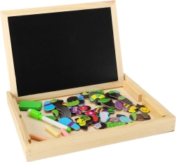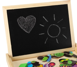 - Balení obsahuje: oboustrannou tabuli, 100 magnetů, barevné křídy, houbičku, fixy