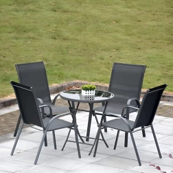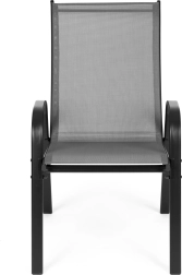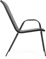Sedák a opěrka z textilenové síťoviny se přizpůsobí tělu, neabsorbuje vlhkost a rychle schne – ideální volba pro celosezónní venkovní použití.