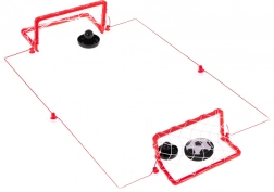 Dvě branky, pálky a šňůra pro vyznačení hřiště promění jakýkoli stůl v arénu pro rychlé zápasy air hockey/fotbalu.