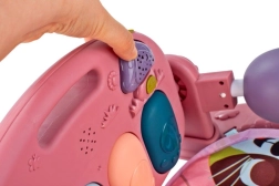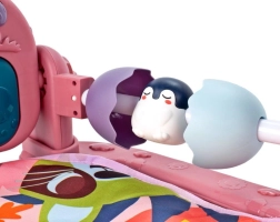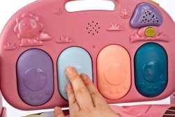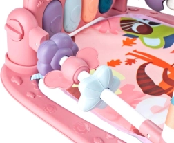 Tato růžová edukační podložka vytvoří bezpečné a podnětné místo pro každodenní hraní. Barevný oblouk se zavěšenými hračkami motivuje miminko k natahování a uchopování, což posiluje koordinaci oko–ruka. Interaktivní pianínko s podsvícenými klávesami nabízí 3 zvukové režimy – tóny stupnice Do–Re–Mi–Fa, krátké zvuky (např. dětský smích) a delší melodie – a tím přispívá k rozvoji sluchu a rytmu.