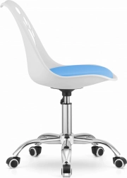 Tato kancelářská židle kombinuje moderní vzhled s praktičností. Bílá a modrá kombinace osvěží jakýkoliv interiér.
