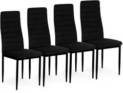 Představujeme sadu čtyř černých židlí, které vynikají elegantním a moderním designem, ideální pro použití jak v obývacím pokoji, tak i v jídelně. Každá židle je navržena s ohledem na maximální pohodlí a nabízí vysoké opěradlo s kvalitním polstrováním.