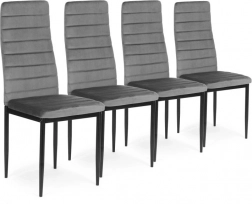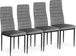 Sada čtyř čalouněných židlí představuje elegantní a moderní prvek každého interiéru. Tyto židle nabízejí vynikající pohodlí díky tvarovanému opěradlu a vysoce kvalitní výplni pěnou. Jsou vybaveny rovnými, černými kovovými nohami pro dokonalou stabilitu a moderní design.
