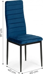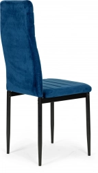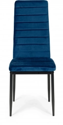 Jídelní židle v modrém sametu jsou ideální pro váš stůl v jídelně nebo kuchyni. Tato sada čtyř židlí se vyznačuje vysokými, dobře tvarovanými opěradly a kvalitní výplní z pěny, která zajišťuje výrazný komfort při sezení. Díky černým kovovým nohám z práškované oceli mají židle stabilitu a moderní vzhled.
