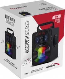 Audiocore AC730 je univerzální přenosný reproduktor, který kombinuje silný zvuk, bohaté možnosti připojení a atraktivní LED efekty. Díky Bluetooth 5.0 snadno přehrajete hudbu ze smartphonu či tabletu, případně využijete USB, SD/MMC nebo AUX pro připojení dalších zdrojů zvuku. Vestavěné FM rádio umožní poslouchat oblíbené stanice kdykoli a kdekoli.