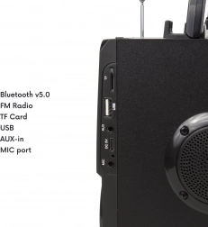 - Široké možnosti připojení – Bluetooth 5.0, USB, SD/MMC, AUX, FM rádio.
