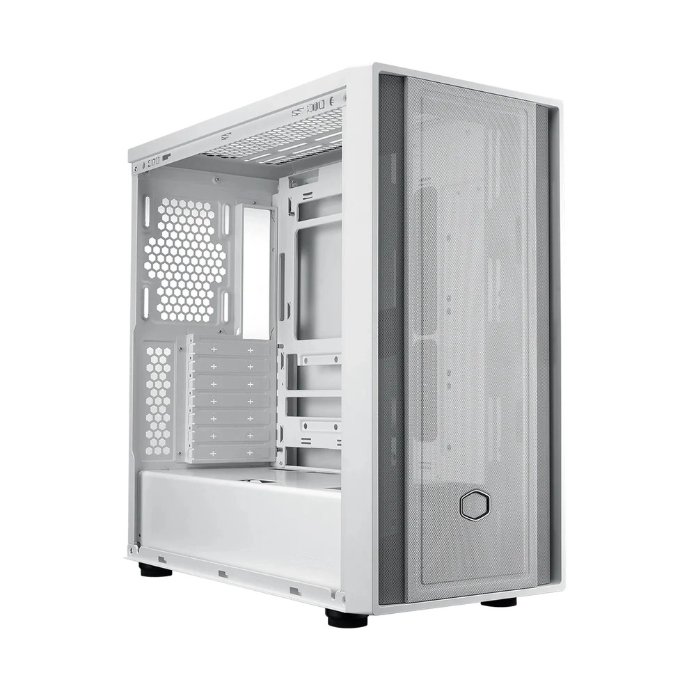 MasterBox 600 Lite je moderní bílá PC skříň navržená pro vysoký výkon a odolné chlazení. Podporuje radiátor až 420 mm, grafickou kartu do 410 mm a nově i záďové konektorové základní desky, čímž nastavuje nový standard pro ATX skříně.