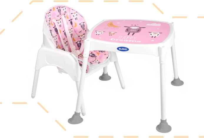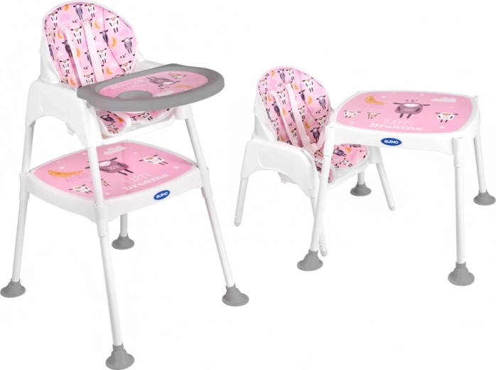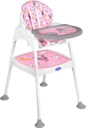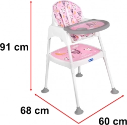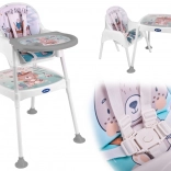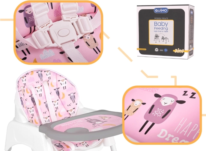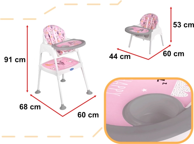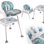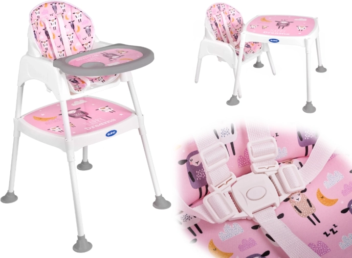 Praktická dětská jídelní židlička 3 v 1 s možností přeměny na samostatnou židličku a stolek roste s vaším dítětem od 6 měsíců do cca 6 let. Nabízí stabilní konstrukci, pětibodové pásy, snadno omyvatelné povrchy a měkké polstrování s možností praní. Ideální pro krmení, hraní i tvoření.