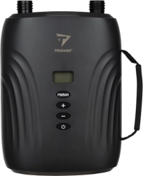 Elektrická pumpa Trizand se vyznačuje jednoduchou obsluhou díky LCD displeji a možnosti nastavení tlaku pomocí tlačítek +/-. Praktický design umožňuje mobilní použití z 12V zásuvky cigaretového zapalovače v autě, což z ní činí nepostradatelného společníka na výlety k jezeru, na pláž nebo na kempování. Pumpa je schopna dosáhnout tlaku až 20 PSI a průtoku vzduchu až 350 l/min, což umožňuje nafouknout paddleboard za pouhých 7 minut.