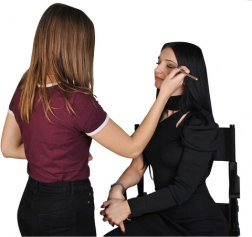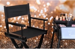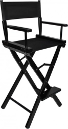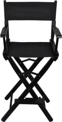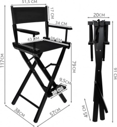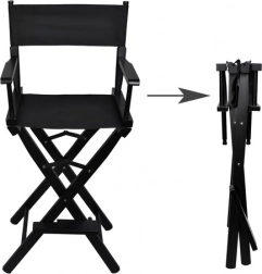 Skládací kosmetická židle v černém provedení je profesionálním kosmetickým křeslem z dřeva, určené pro vizáž, líčení a styling, ideální pro salony a mobilní vizážisty.