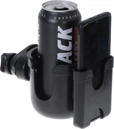 Tento držák je vhodný pro různé typy lahví, bidonů, termosů a telefonů. Čtyři pružné 'uši' zajišťují bezpečnou fixaci nápojů bez obav z vylití. Otevřené boky umožňují snadný přístup k obsahu. Přepážka na telefon umožňuje mít vaše zařízení stále na očích, takže nezmeškáte žádnou důležitou zprávu.