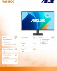ASUS VA249QG je monitor s bezrámečkovým designem, který zajišťuje moderní vzhled a minimalizaci rušivých prvků při práci s více monitory. Díky technologii ASUS Eye Care tento monitor snižuje únavu očí díky Flicker-Free a Low Blue Light funkcím, což jej činí ideálním pro dlouhodobé používání.