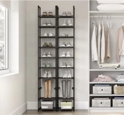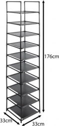 Snadná montáž bez potřeby nářadí je záležitostí pouhých pěti minut, a to i pro nezkušené uživatele. Botník s deseti policemi vám umožní velký úložný prostor pro až deset párů bot.
