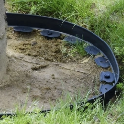 Zahradní obrubník Gardlov je navržen tak, aby byl stabilní i v méně stabilních půdách díky přiloženým kotvícím kolíkům.