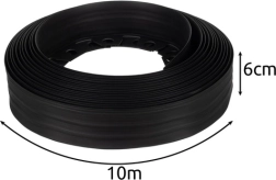 Produkt je navržen tak, aby vyhověl jakékoliv zahradě díky možnosti snadného přizpůsobení délky. 6cm výška efektivně zabraňuje rozrůstání trávy a kořenů, a tak udržuje zahradu upravenou a hezkou. Díky černému elegantnímu povrchu obrubník esteticky ladí s okolní výsadbou.