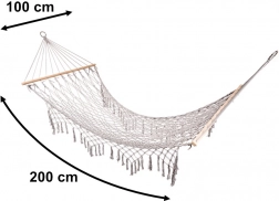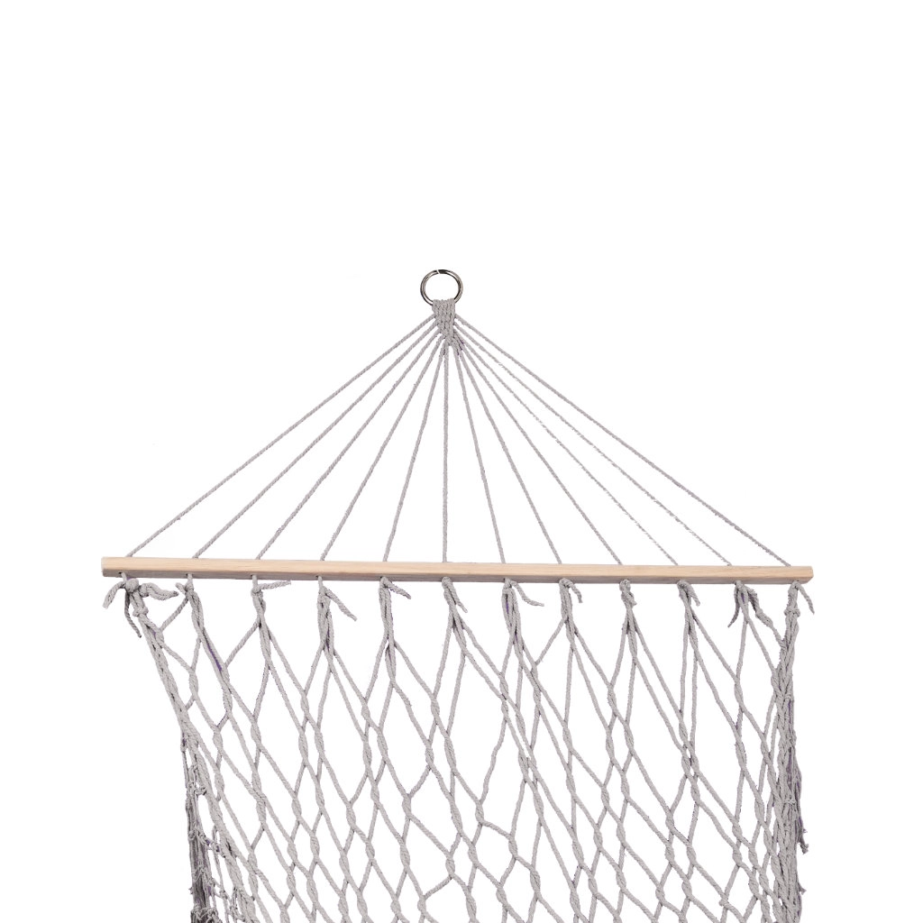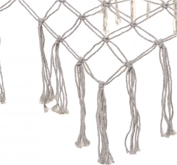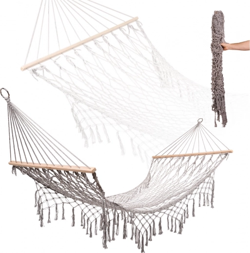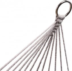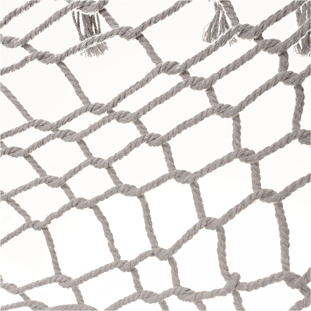 Vyrobena z kvalitních bavlněných vláken (65%), které zajišťují vysokou pevnost a nosnost až 250 kg. Díky elegantním třásněm a šedé barvě dokonale zapadá do jakéhokoli zahradního prostředí.