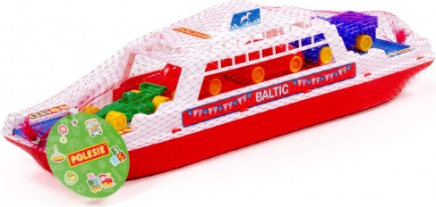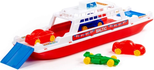 Objevte zábavu na vodě i na souši s plastovým trajektem BALTIC a čtyřmi mini autíčky. Hračka vyniká živými barvami, odolným kvalitním plastem a funkčními nájezdy pro snadné nakládání autíček – ideální do vany, na zahradu i k jezírku.
