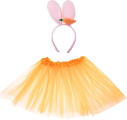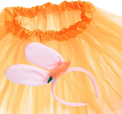 Obsahuje oranžovou tutu sukni a čelenku s oušky a mrkví.